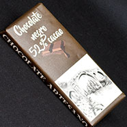 Ingredientes: pasta de cacao, azúcar, manteca de cacao, emulgente (lecitina de soja), vainilla, cacao 52%.